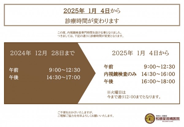 🗒️2025年 外来診療時間のお知らせ📝2025/01/01(水)