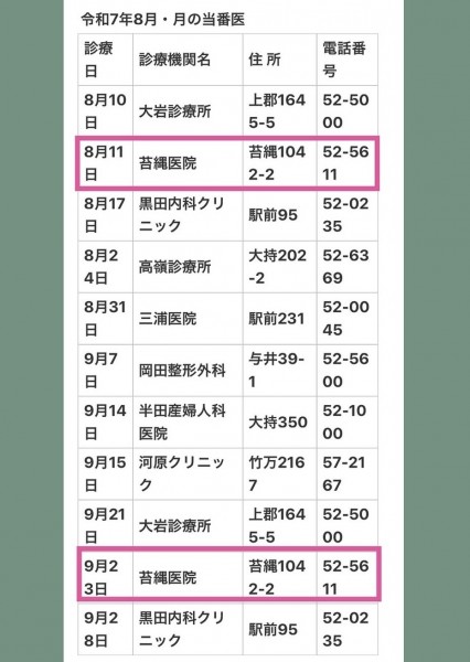 🌿8月・9月 休日診療のお知らせ🌿2025/08/05(火)